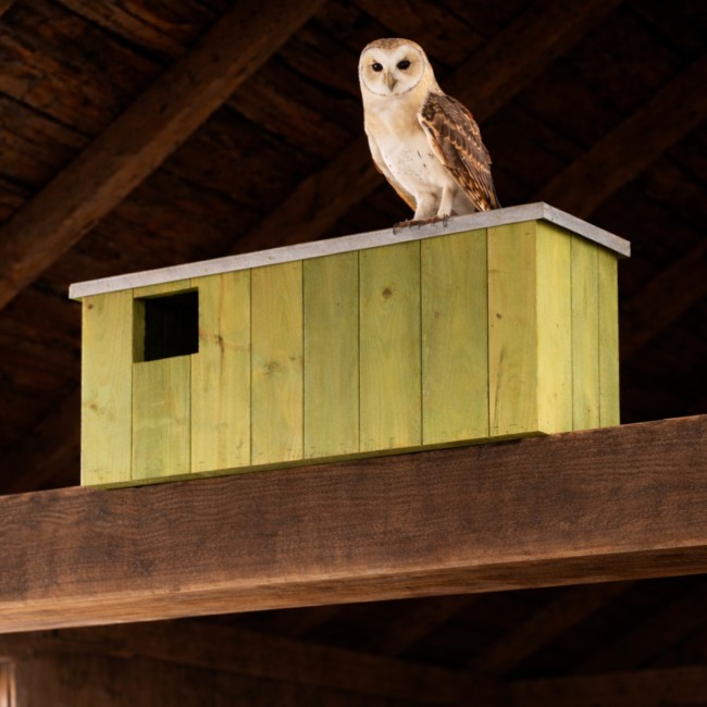 The slatted pine construction lasts for many seasons, while the soft green tone adds visibility against your wall or in your barn. Provide a fantastic roosting spot for select birds of prey by adding this Barn Owl House to your setting.