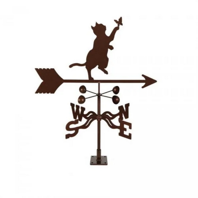 Cat & Butterfly Weathervane – Choice of Roof, Deck, Post, 4-Sided, or Garden Mount
